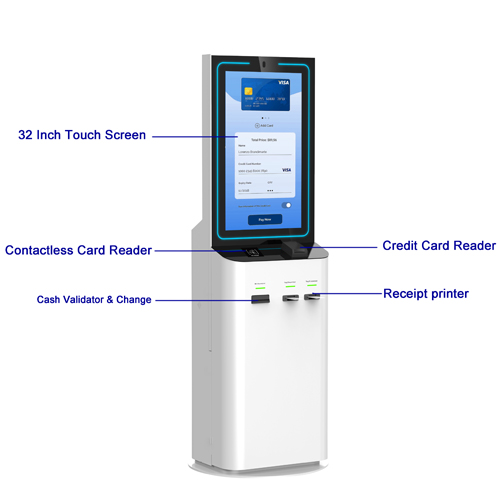 32 Inch Touch Screen Payment Kiosk With Cash Acceptor Cash Change Payment Support Credit Card Reader Images |
